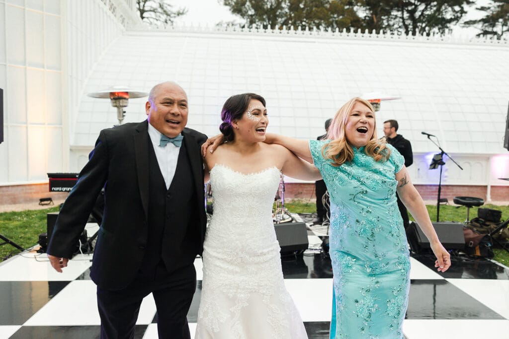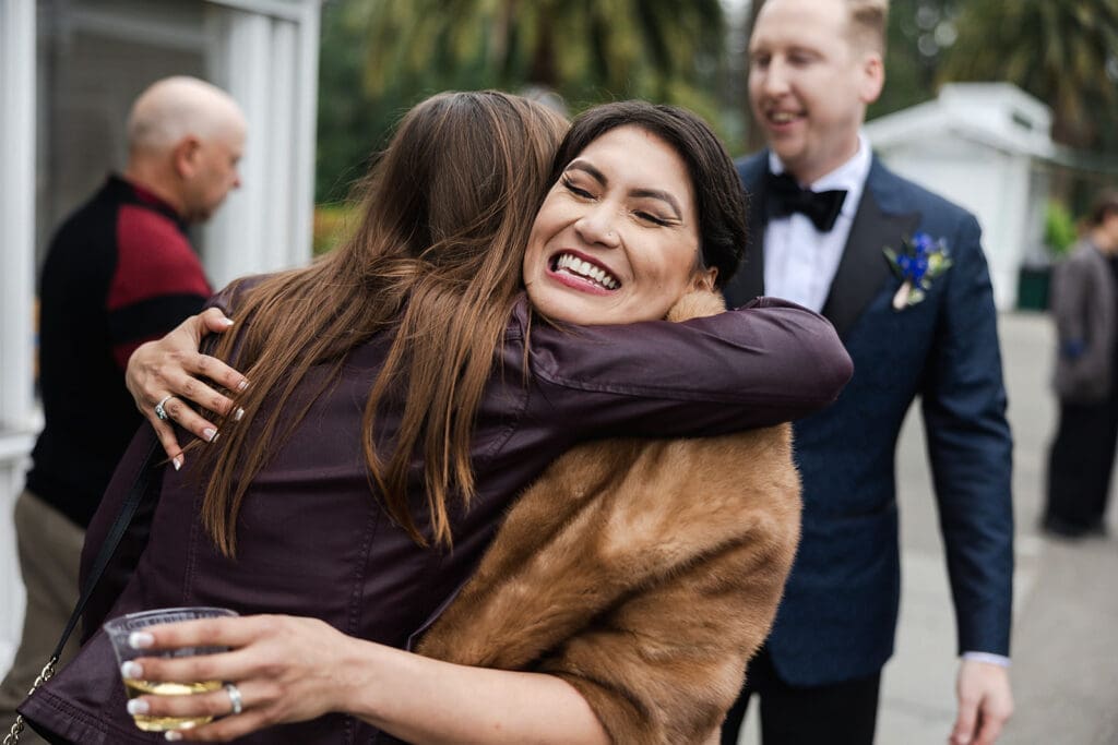 After the ceremony guests spilled out onto the lawn in Golden Gate Park, hugging the couple, playing lawn games, and exploring inside the Conservatory.