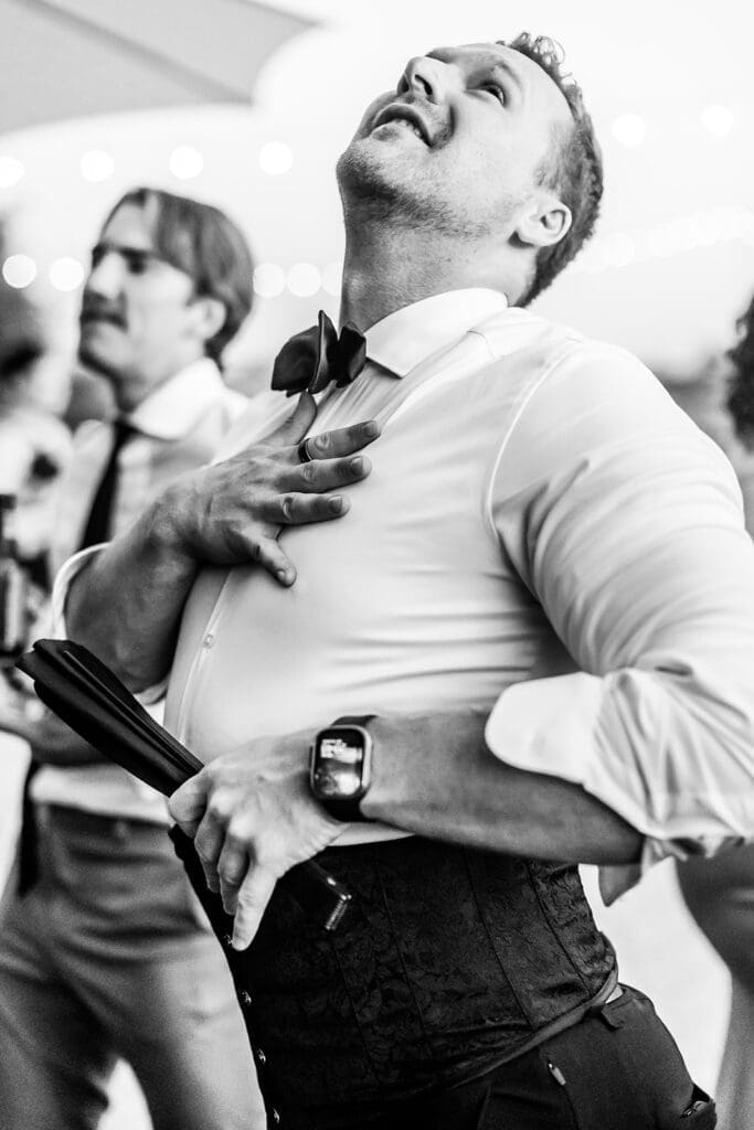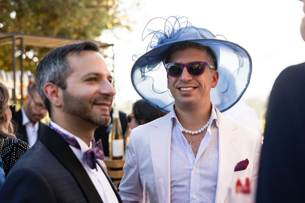 It was a hot Sonoma day, and guests shaded themselves with colorful parasols while wearing vibrant, expressive outfits that perfectly matched the joyful tone of the celebration. A close friend officiated, making the ceremony feel intimate, heartfelt, and deeply personal.