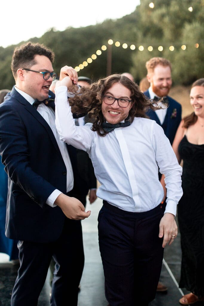 LGBT couple enjoy their colorful Sonoma wedding reception at Gundlach Bundschu Winery.