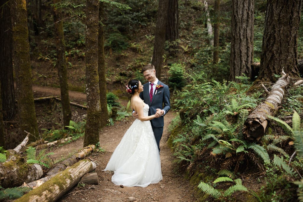 This wasn’t a styled shoot — it was a Mendocino Woodlands wedding that actually felt like the people in it, not a Pinterest board come to life. Surrounded by ancient redwoods and real moments, Shannon + Alan’s day was full of connection, color, playfulness, and the sort of intention that makes you forget whoever told you “weddings have to be traditional.”